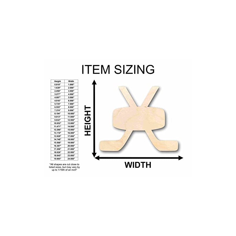 Unfinished Wood Hockey Sticks Pair with Puck Silhouette Craft up to 24" DIY 6" / 1/8"