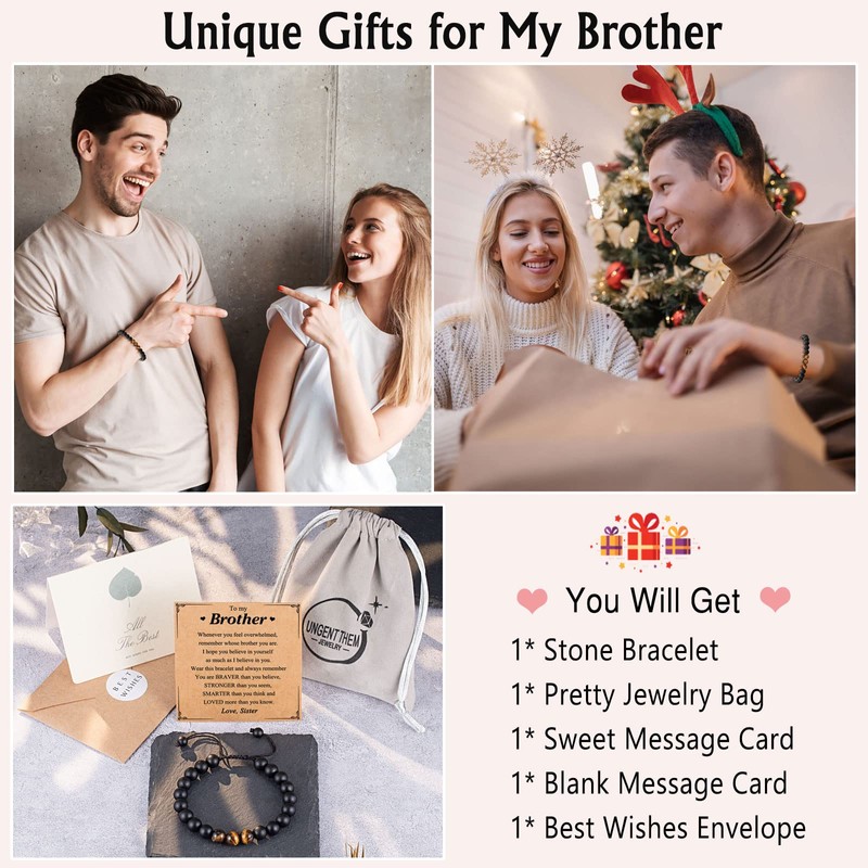 UNGENT THEM Brother Gifts from Sister, Christmas Birthday Gifts for Brother Adult Older Big Little Brother Bracelet Fathers' Day Graduation
