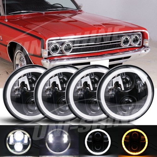 Uni-shine For Ford Thunderbird Torino 4pcs 5.75" 5-3/4 Black LED Headlights Hi Lo Beam DRL