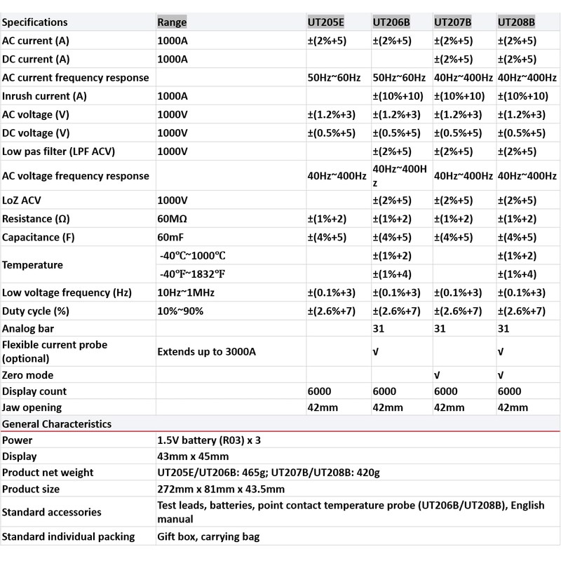 UNI-T UT206B UT207B UT208B Amperemeter VFC Elektrische Instrumente DC/AC Current Voltage Tester Auto Range