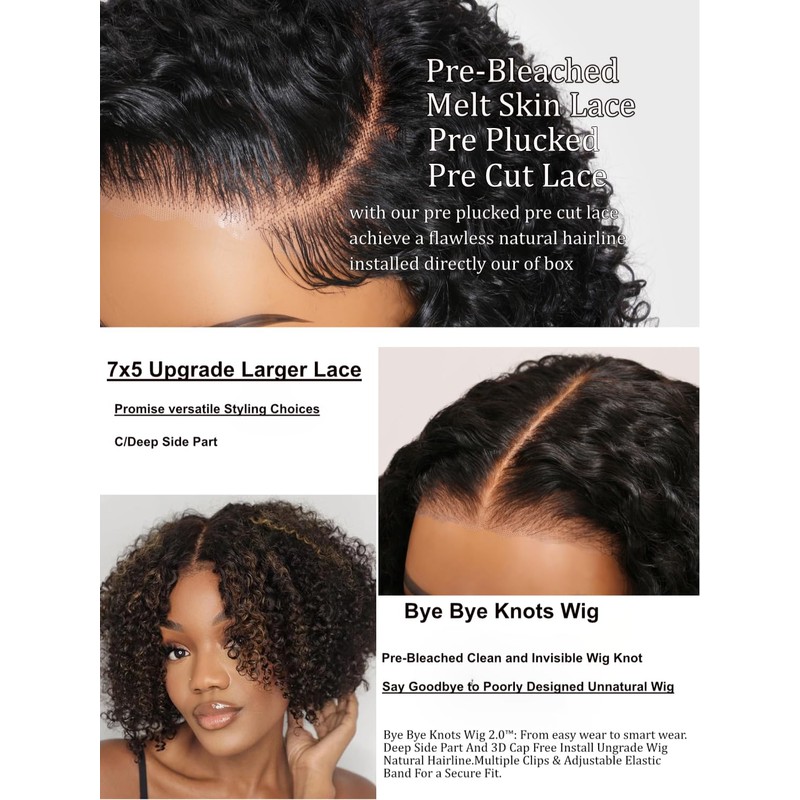 - 2. Upgrade invisible knots Glueless Bob Wig: Short curly bob Wigs Human Hair 7X5 hd lace wig human hair wig pre bleached clean invisible knots more natural than tiny lace. Say Goodbye to Poorly Designed Unnatural Wig.