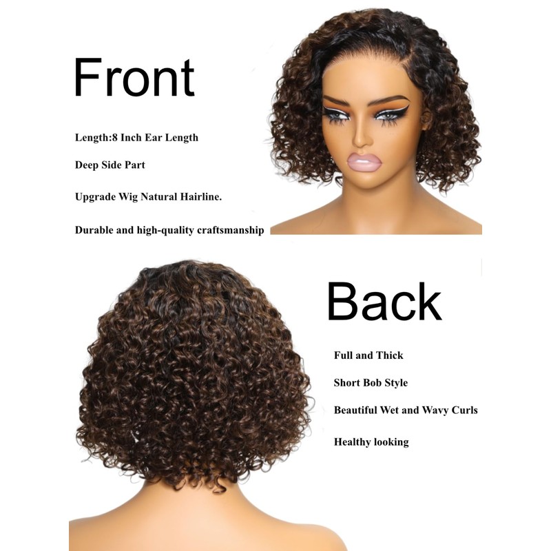 - 4.Save money bob wig: Curly short bob wig human hair just 30 seconds install. No hairstylist needed. Ready to go wigs glueless human hair, beginner-friendly. Real glueless No glue needed. Easy to maintain everyday wear bob wig human hair glueless.