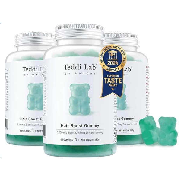 Unichi Teddi Lab Hair Boost Gummy 3 Pack For Stronger Thicker Hair.