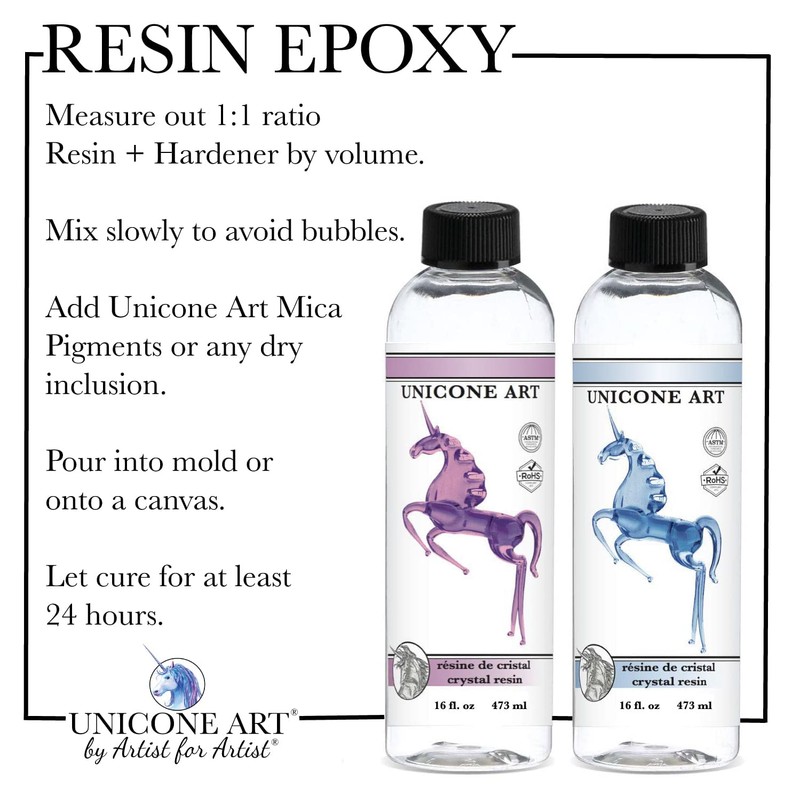 - {Easy to Mix 1:1 Formula} The resin craft set includes 16oz of resin and 16oz of hardener, for a total of 32oz of art resin epoxy. The formula is BPA and VOC free, and works really well with our mica powder (sold separately). Just mix one part resin and one part hardener and mix slowly to avoid bubbles in your artistry epoxy.
