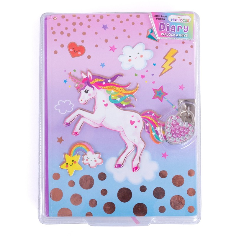 - DISEÑO - Hermoso diseño de unicornio arco iris brillante con estrellas, nubes, corazones y mucho más. Cubierta dura libro para apoyo de escritura extra y protección duradera