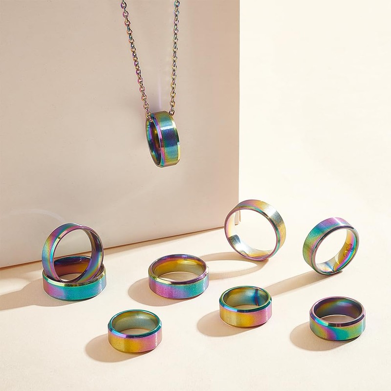 UNICRAFTALE 18 anillos de dedo de banda ancha de acero de titanio arco iris de 9 tamaños, con inscripción láser, anillos de boda clásicos en blanco para hacer joyas