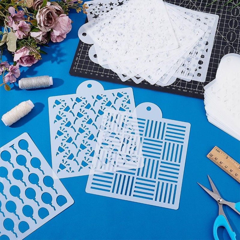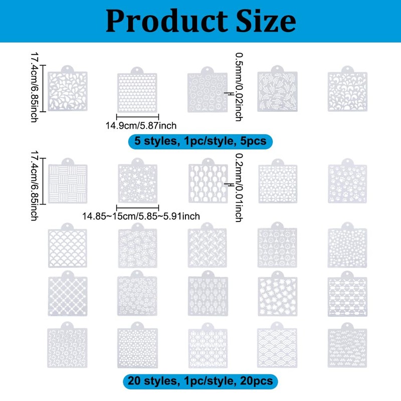 - Compact and Portable Size: The embroidery templates are about 6.85 inch(174mm) long and 5.84 inch(148.5-149mm) wide,0.007-0.02 inch(0.2-0.5mm) thick, easy to carry and store, various size patterns combinations, providing ample space for your creative embroidery projects.