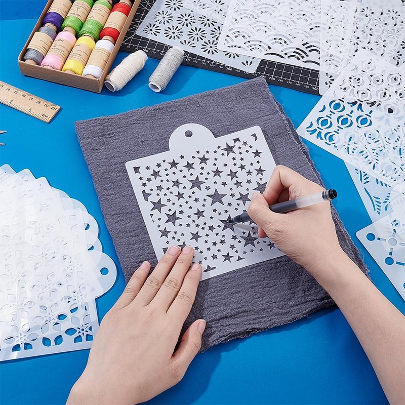 - Wide Application:The reusable sashiko stencils for crafts are great for shirts, pants, shoes, bags,gloves, scarves, coats, towels, mats,dresses, jeans, skirts, canvas bags, tablecloths, towels, cushions and other fabrics.And can also be applied to repair holes in your clothes.