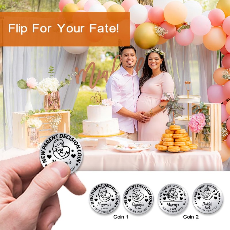 - New Parent Decision Coin: This is the newborn decision coin that will help them meet the new challenges of parenting. Applies to all decisions made after the birth of a newborn and easily solves the problem of who bathes, feeds, bathes, changes nappies.