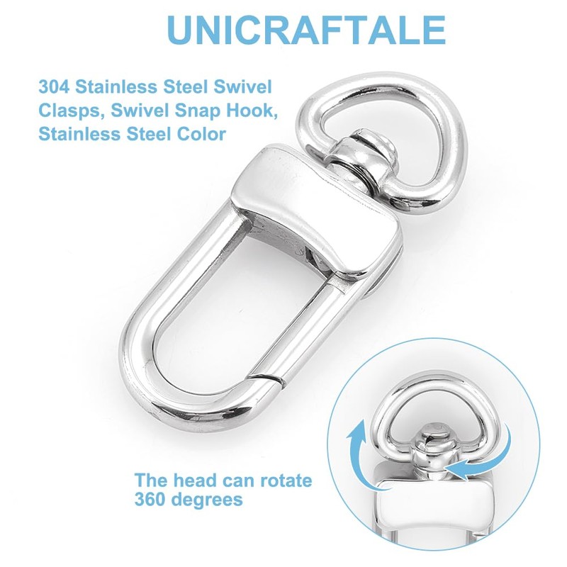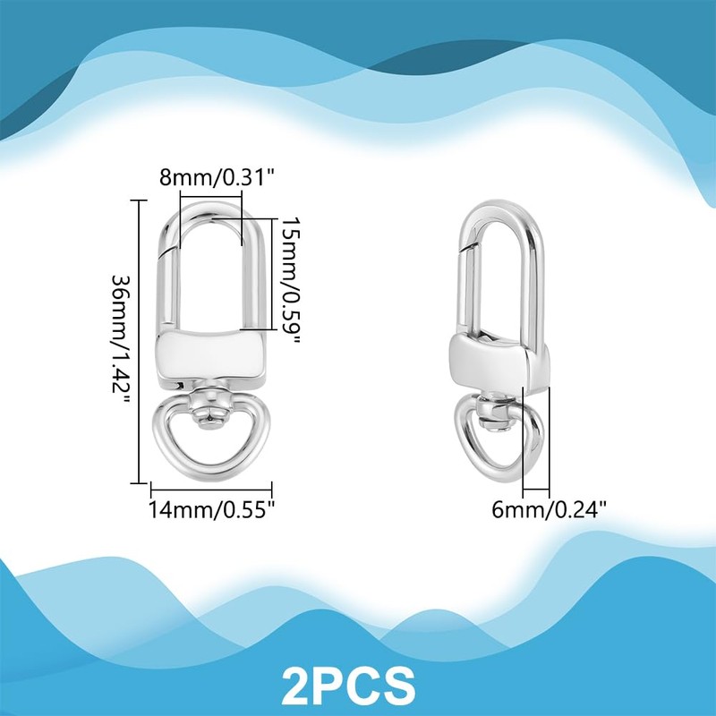 - Materia:The swivel clasps is made of 304 stainless steel.Strong and durable, not easy to rust or deform.Aesthetically pleasing and comfortable to wear.The surface is bright and shiny, and it is not easy to fade.