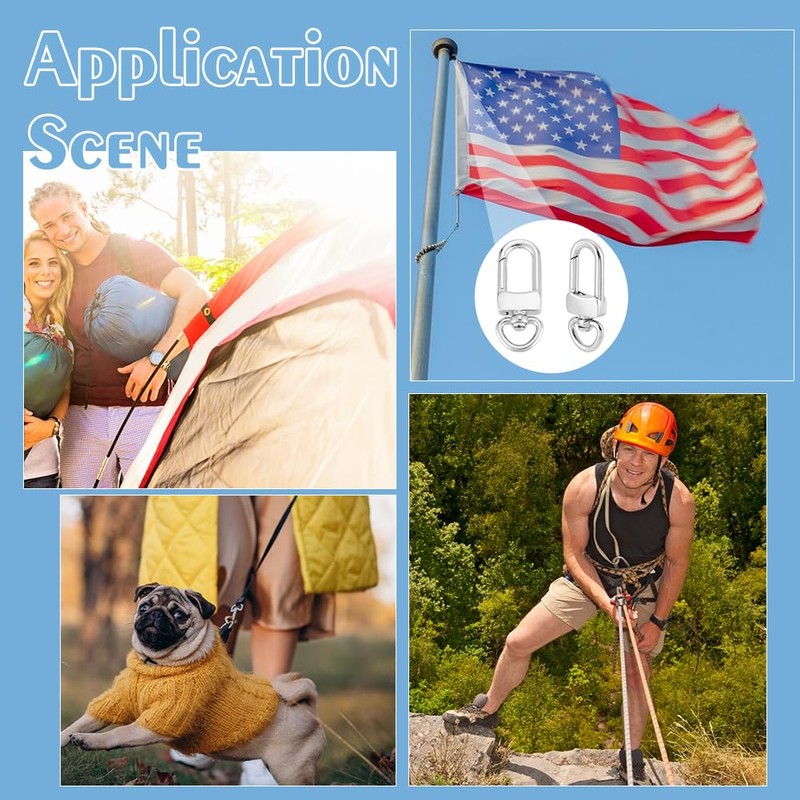 - Easy to use:The swivel snap hook allows for strong and quick attachment to any accessory,bag,pendant,rope,cable,chain,key chains,or dog leashes,sports equipment,marine hardware,as well as outdoor activities.
