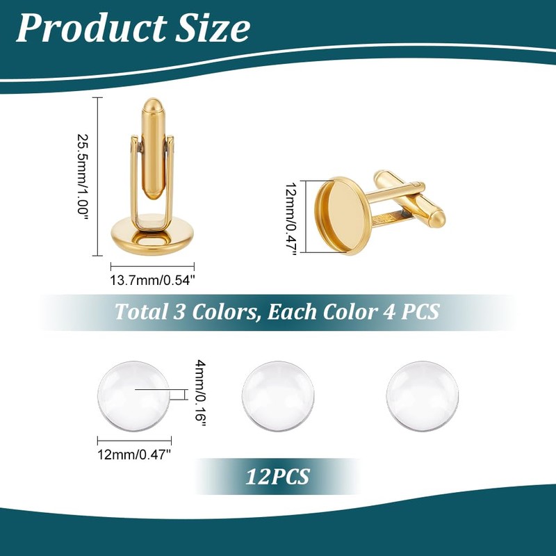 - Packaging Includes: You will get 12 sets round cufflink blanks in 3 colors and glass cabochons, about 2 styles 12pcs cuff button and 12pcs glass cabochons in total, sufficient quantities to meet your daily needs.