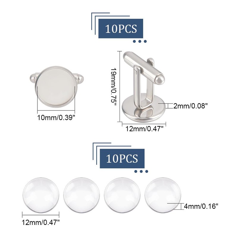 • Size: 304 stainless steel cufflink: approx. 13.5 mm, 5 pairs; transparent glass cabochons: approx. 11.5 ~ 12 x 4 mm 10 pieces