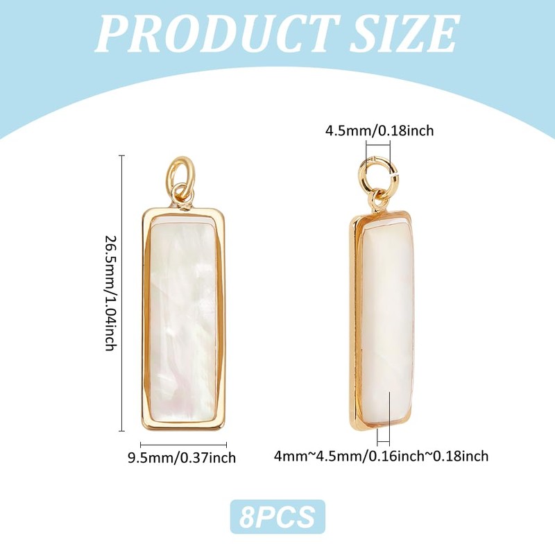 UNICRAFTALE 8Pcs White Abalone Shell Charms Paua Shell Pendant Rectangle Shells Charms Natural Pearl Pendants Pearl Loose Beads Charm with Gold Border for DIY Jewelry Making Necklace Bracelet