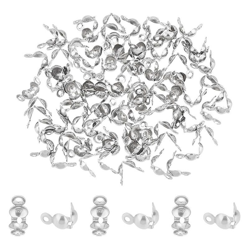 UNICRAFTALE Pack of 100 304 Stainless Steel Bead Tips Knot Covers End Caps Clamshell Knot Cover Cord End for DIY Jewellery Making 4 x 8.5 mm, Hole 1.5 mm