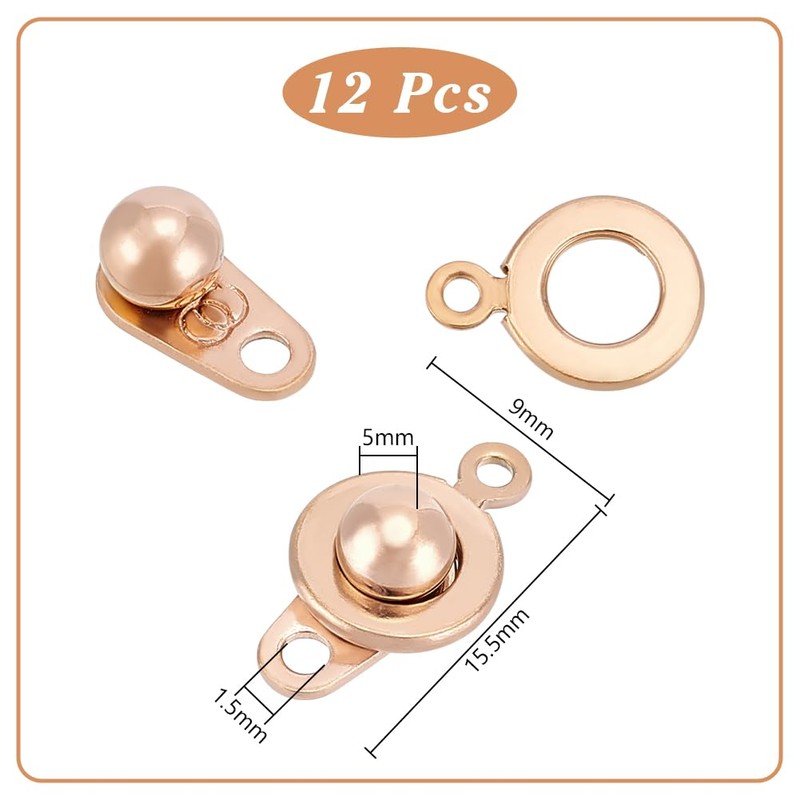 UNICRAFTALE Pack of 12 Press Studs Rose Gold Stainless Steel Press Stud Ball Clasps End Clasps Connectors Press Studs Jewellery Connectors Round Press Stud Clasps for DIY Necklaces