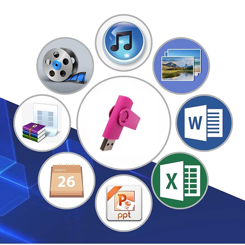 • Amplia compatibilidad y soporte multiformato: compatible con USB2.0, USB 1.1 hacia atrás, memorias flash USB giratorias de 1 GB que se pueden utilizar en computadora, TV, altavoz, portátil, audio de coche y otros dispositivos USB. Para la comodidad de la transmisión y almacenamiento de datos móviles, los convertidores OTG y tipo C se proporcionan como regalo. Compatible con Windows 7 / 8 / 10 / Vista / XP / 2000 / ME / NT Linux y Mac OS. Guarda datos de MP3, MP4, RMVB, EXCEL, WORD, PDF, imagen y otros archivos