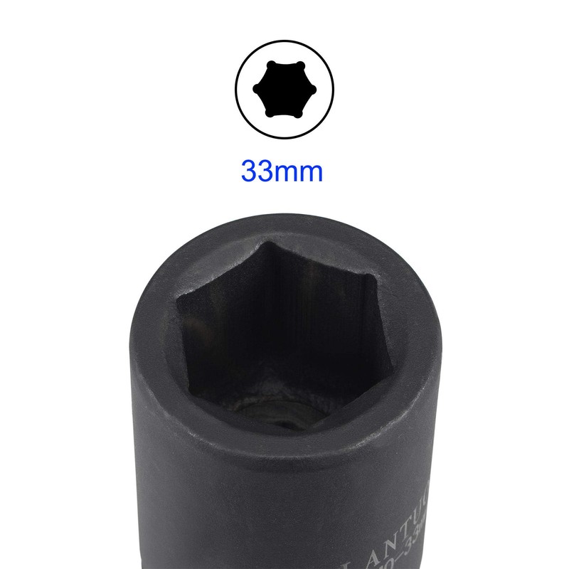 • 【Appropriate Size】1 inch drive, 33mm 6-point socket, 80mm/80mm" Overall length.The multiple size of impact socket is enough to meet your work uses.