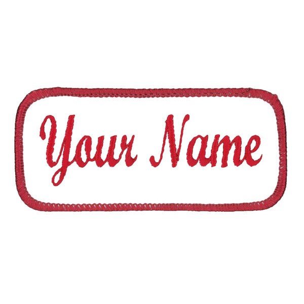 Uniform Work Shirt Patch Customized Embroidered Red Border on White, Sew on