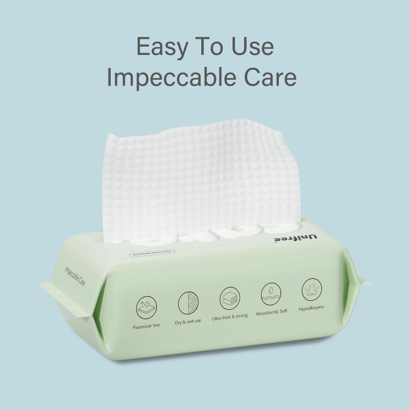 Soft & Durable Dry Wipes: Made from FSC-certified wood pulp, these face wipes are 3 times thicker than regular paper towels, yet remain softer, gentler, and stronger. They won’t fall apart when wet.