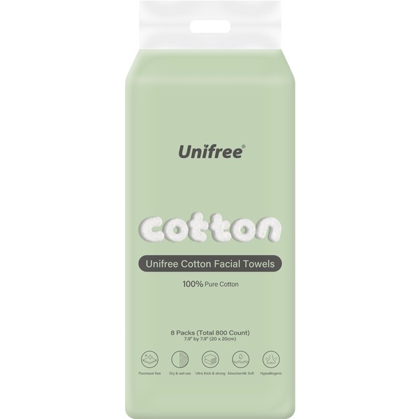 Unifree Facial Tissues I Dry Wipes I Makeup Remover, 8-pack Value Pack, 800 Count