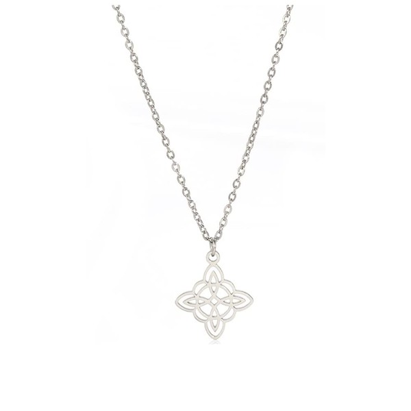 UNIFT Witch Knot Necklace for Women Stainless Steel Irish 4 Pointed Celtic Knot Pendant Fashion Charm Magic Jewelry Gift for Girls, Stainless Steel, No Gemstone