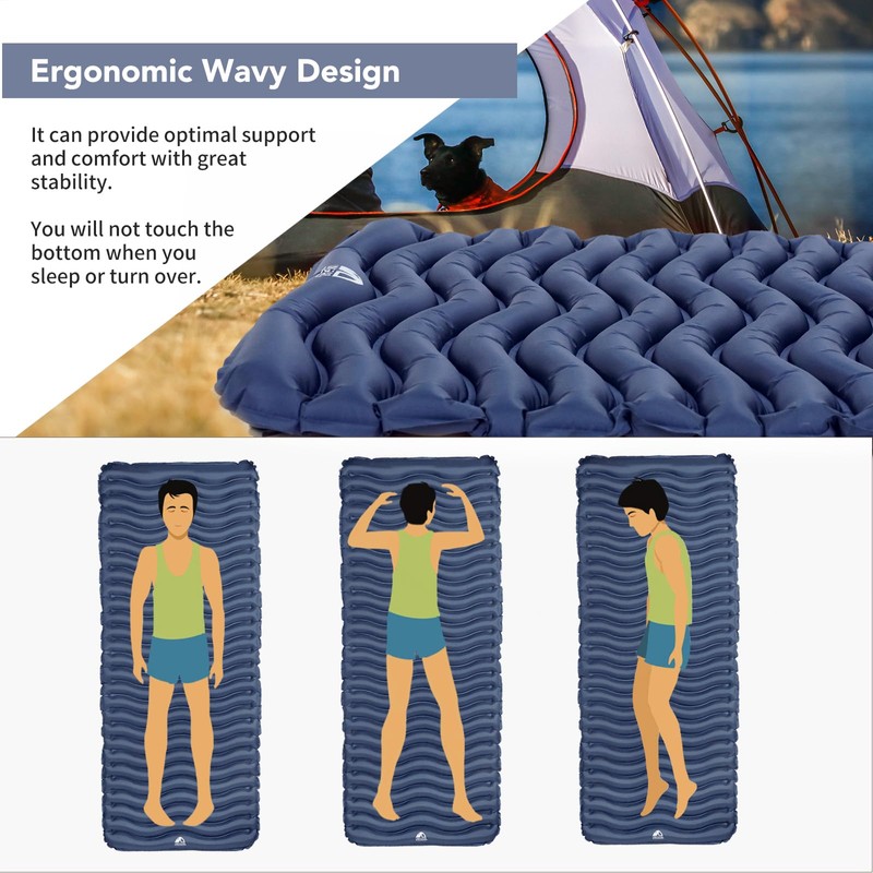 - 【Comfortable Body Support Pad】: The portable air mattress pad features a wave air tube technology which provide good support for anyone(weight<200KG), perfectly positioned to offer you the support you need, make you feel like you are sleeping on air, and no more bottom out! 2 Inch thickness cushion provide unrivaled comfort, stability and warmth.