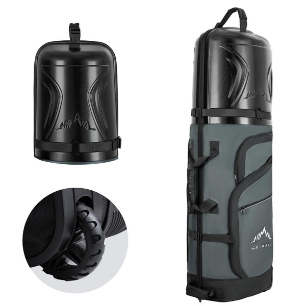 UNIHIMAL Golf Travel Bag with PC Hard Case Top, 1680D Heavy Duty Oxford Fabric Golf Clubs Travel Bags for Airlines with Wheels, Wear-Resistant, Foldable(Neutral Gray)
