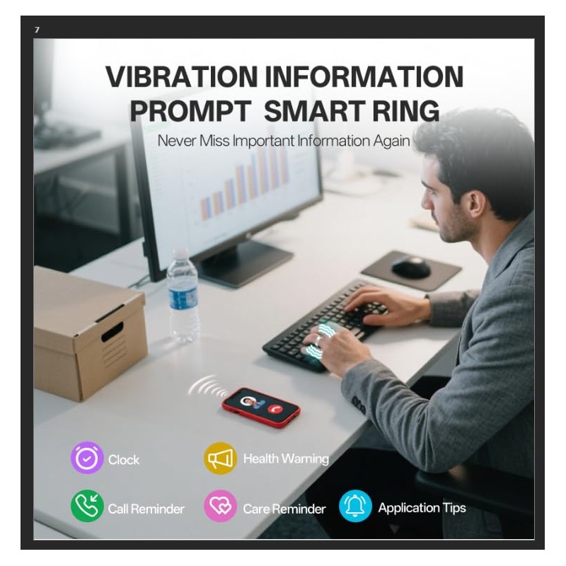 - Discreet Vibration Alerts: Never miss important moments with customizable vibration notifications. Whether it's calls, messages, reminders (hydration, medication, schedule), or health alerts, this stylish smart ring delivers subtle vibrations through its built in ultra low power motor. Suitable for both men and women