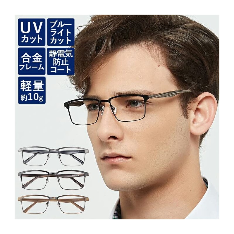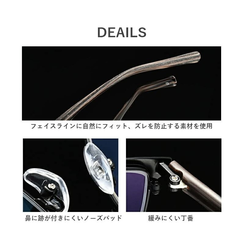 [unimed] 老眼鏡 おしゃれ メンズ ブルーライト33%カット 老眼鏡メンズ 度数 人気 軽量 メンズ uvカット 静電気防止コート 撥水コート 柔軟性に テンプル 1822(ブラウン, PC用(※度なし))