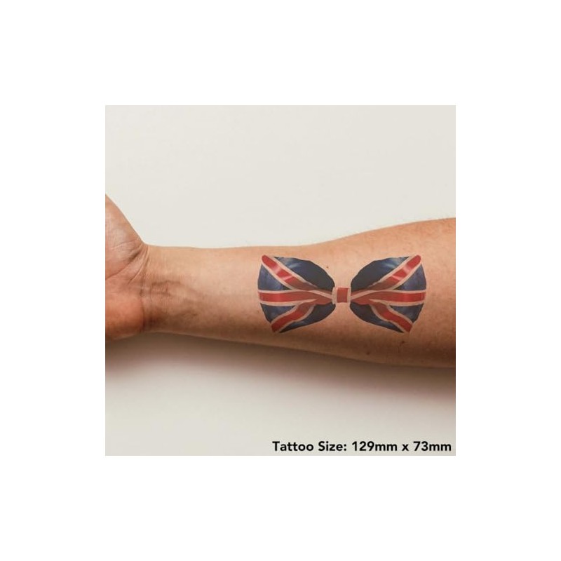 'Union Jack Bow Tie' Temporary Tattoo - Water Resistant, Skin-Safe, Non-Toxic Transfer (TO00076067)