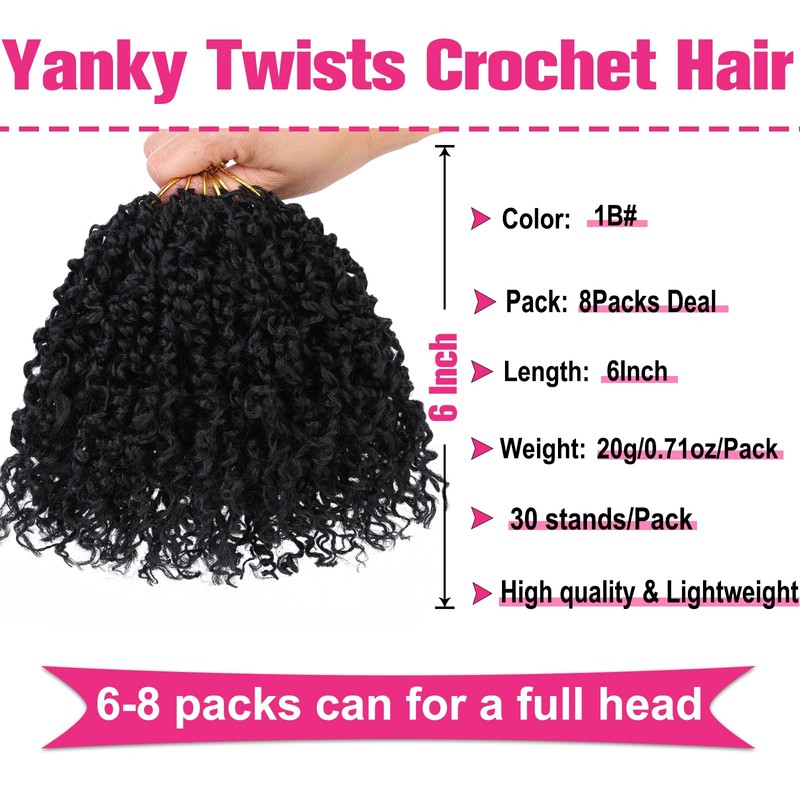 - Yanky Twist Crochet Hair Use: Yanky Twist Crochet Hair has a separate pre-loop design, so it is easy to install and use quickly, can save you time and money, so that you will not waste a long time to achieve the stylish and beautiful hair you want.