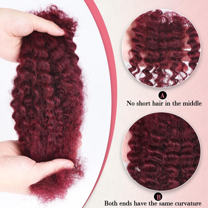 Unipearl Afro Kinkys Bulk Human Hair 50g/Pack Human Braiding Hair for Marley Twist, Locs Extensions & Crochet, Burgundy Afro Bulk Hair for Dreadlocks 16Inch