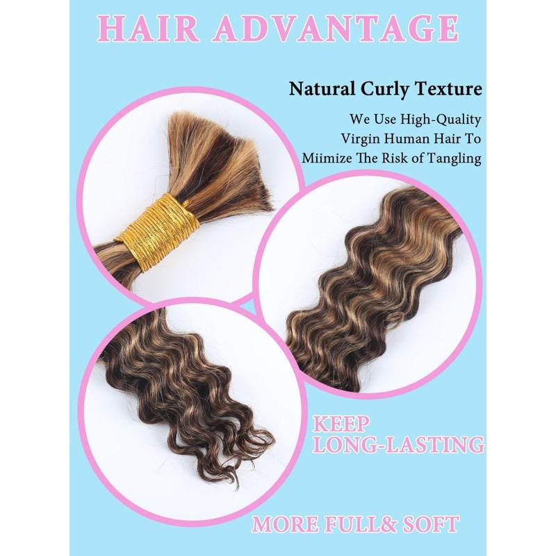 - Premium quality materials: Deep bulk human hair braiding hair for boho braids use 100% unprocessed 10A Brazilian virgin human hair, no weft free from chemicals, odours, and is clean and soft. Natural and healthy, soft and elastic, full and dense. Simple styling for different fashion-forward looks.