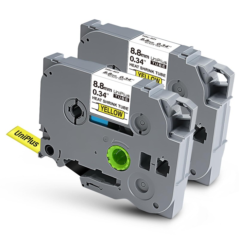 UniPlus Compatible with Brother Heat Shrink Tube Label Tape HSe-621 HSe621 HS-621 HS621 Black on Yellow for P Touch PT-E300 PT-E500 PT-H300 PT-D700 Printer, 0.34" x 4.92ft (8.8mm x 1.5m), 2-Pack