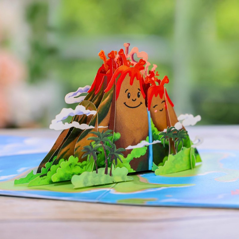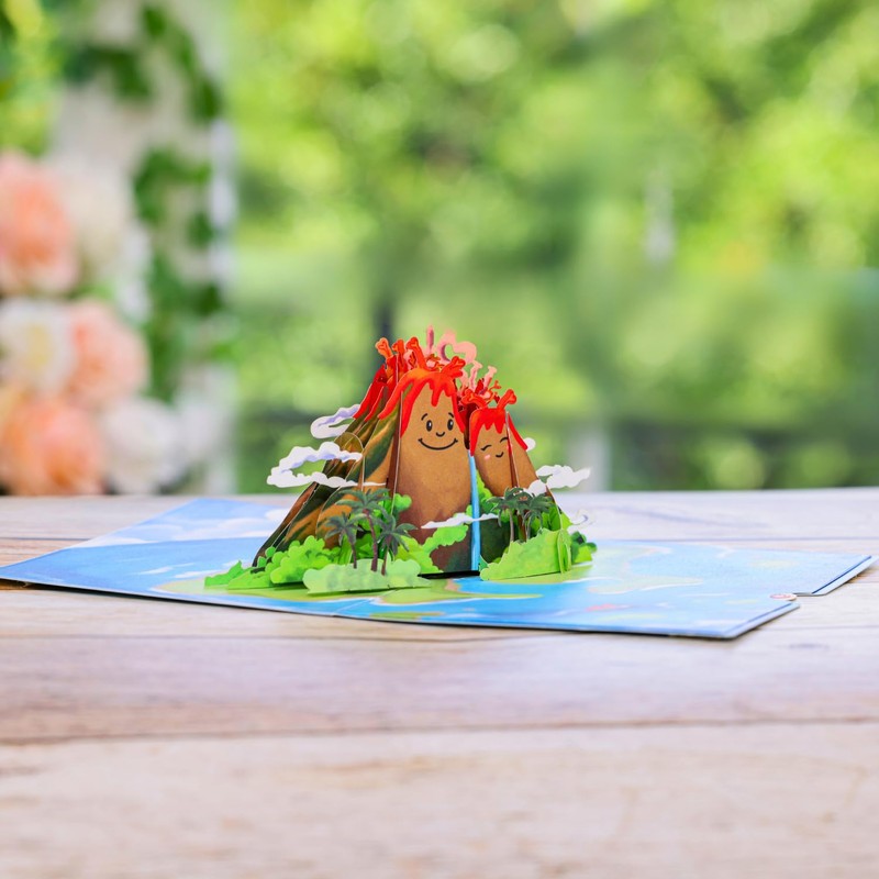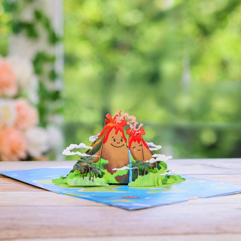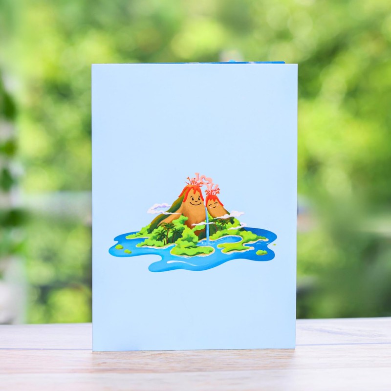 - ❤️ A SYMBOL OF EVERLASTING LOVE: The blue hues and the two I Lava You volcanoes on the outer cover immediately set a romantic scene, promising an unforgettable journey of love. Upon opening, two 3D mountains spring to life, leaning tenderly against each other. Atop two peaks, lava erupts passionately, forming "I ❤️ U" smoke, symbolizing the profound bond between two souls. Lush green trees and crystal-clear waters adorn the scene, creating a picture-perfect setting for love's eternal dance.