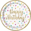 Unique 26195 Foil Stamped Paper Plates-23 cm-Bright Triangle Birthday Party-8 Count (Pack of 1), Multicolour