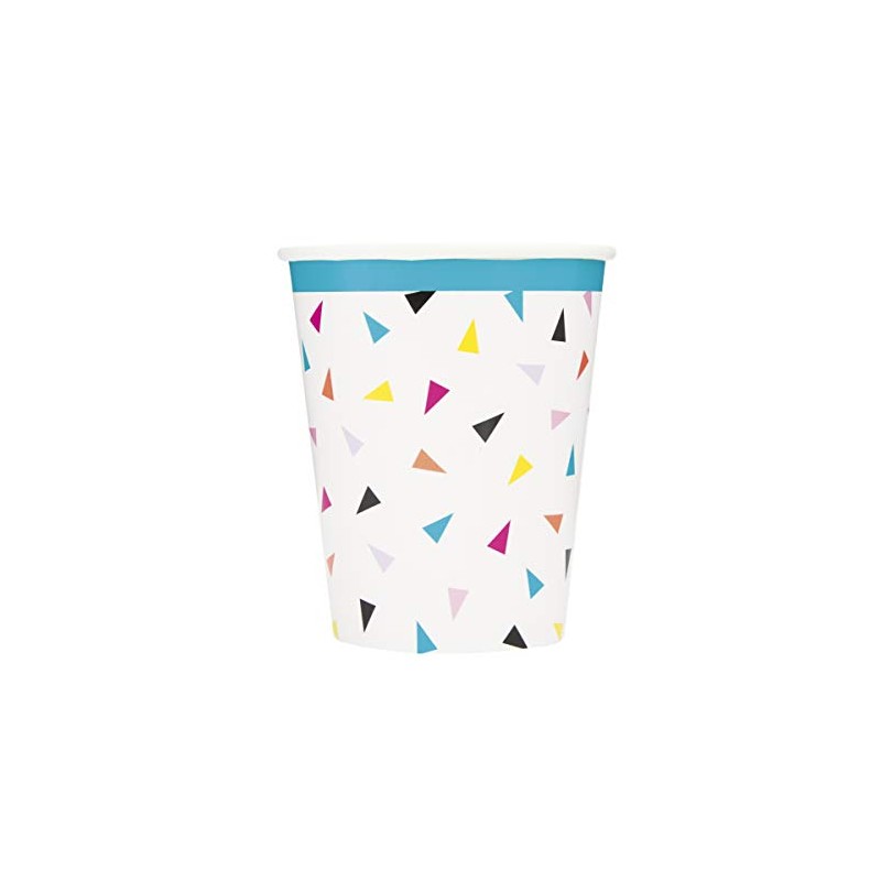 Unique 73146 Classic 9oz Paper Cups | Triangle Confetti Theme, Nylon/A