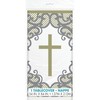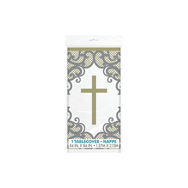 - ELEGANT DESIGN: Our fancy gold cross rectangular plastic table cover features a beautiful gold cross design, perfect for adding a touch of class and sophistication to your religious events and any other special occasions.