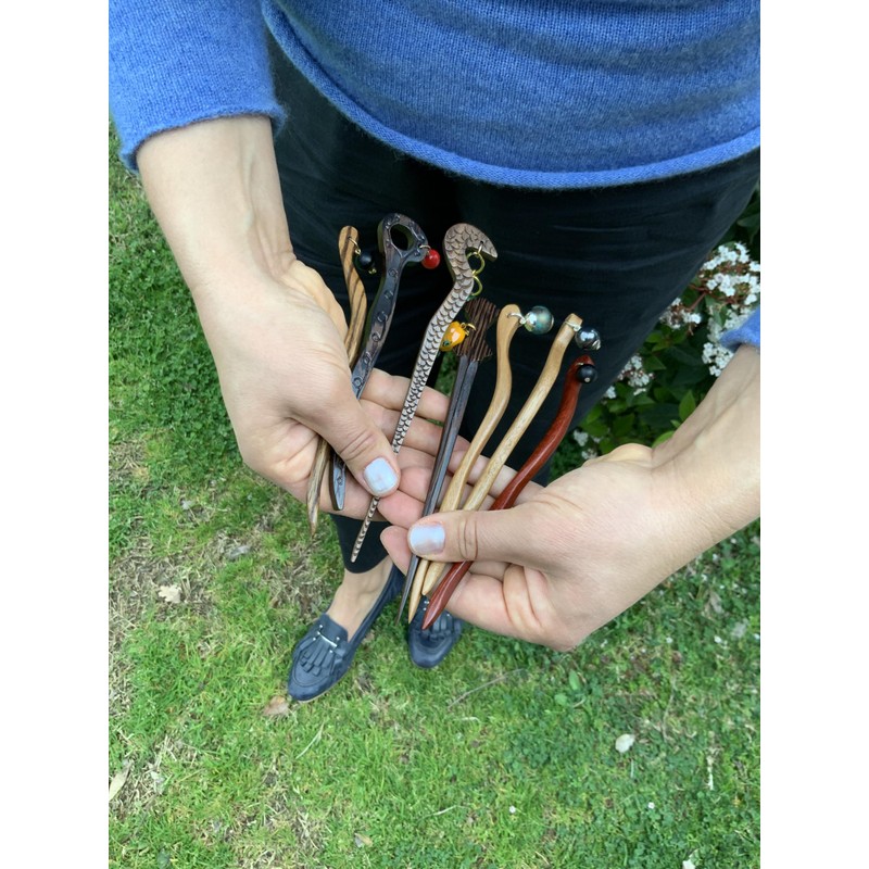 - Unique: designed and hand carved one-of-a-kind hair stick
