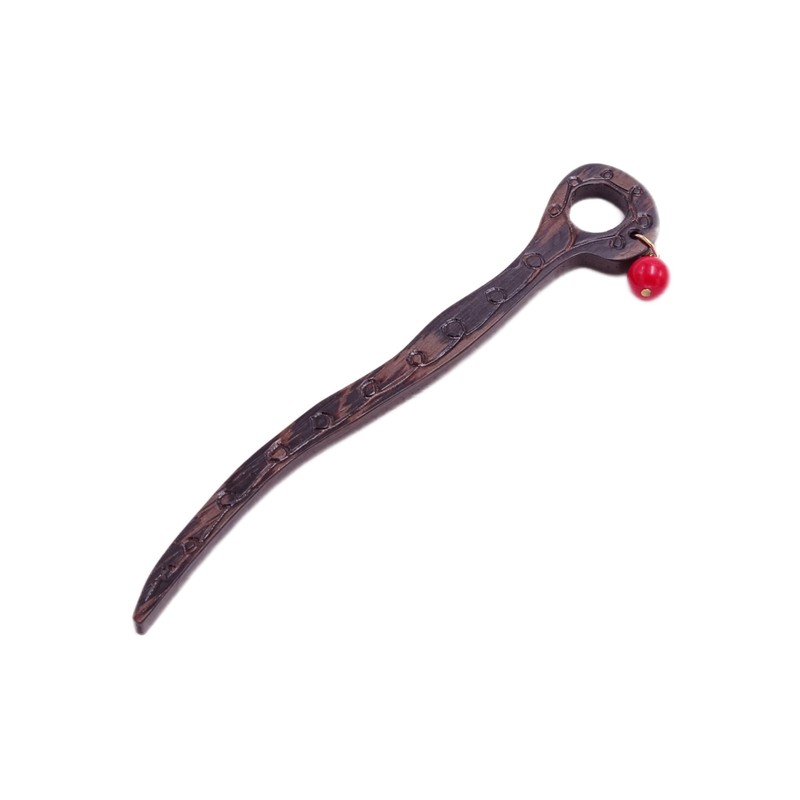 Unique Handmade Wenge Wood Hair Stick with Coral Bead