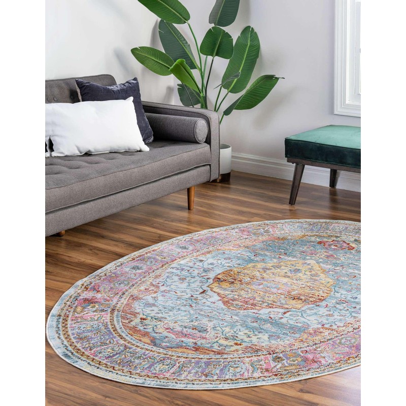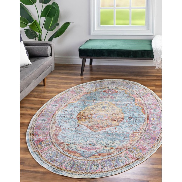 Unique Loom Baracoa Collection Area Rug - Miramar (5' 1" x 8' Oval, Light Blue/ Blue)