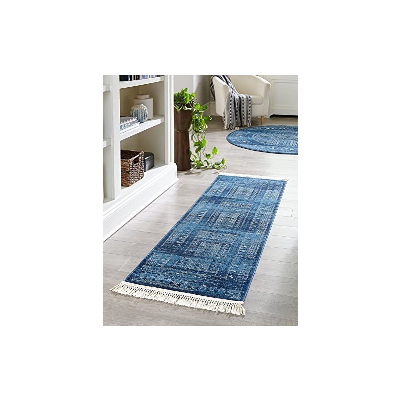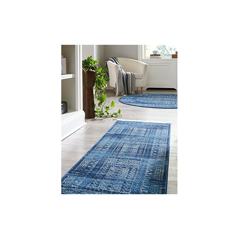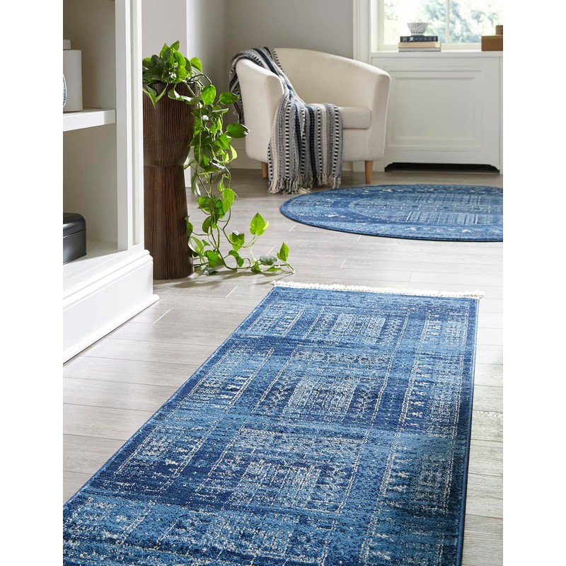 Unique Loom District Collection Area Rug - Sequoia (2' 7" x 12' Runner, Blue/ Navy Blue)