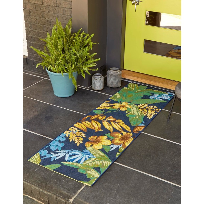 Unique Loom Outdoor Botanical Collection Area Rug - Calypso (2' x 6' 1" Runner, Multi/ Light Blue)