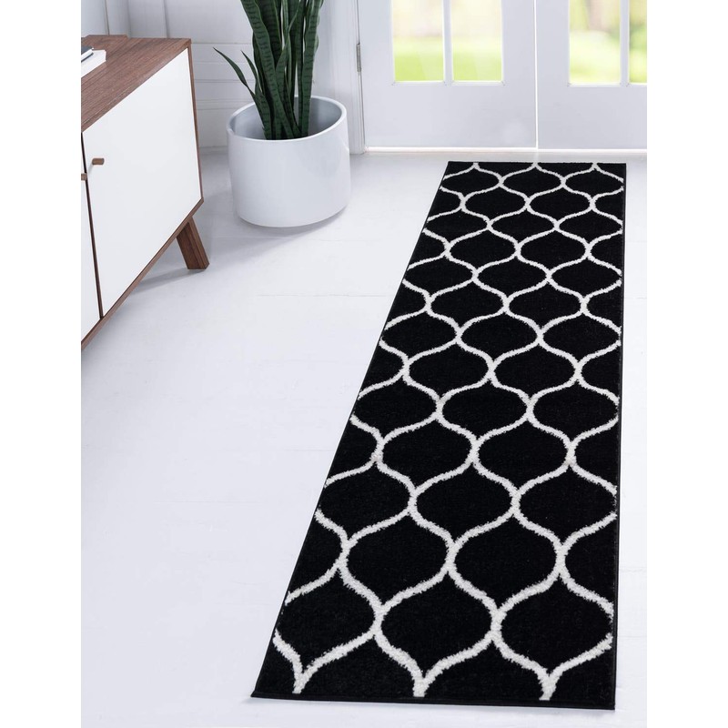 Unique Loom Trellis Frieze Collection Area Rug - Rounded (2' x 8' 8" Runner, Black/ Ivory)