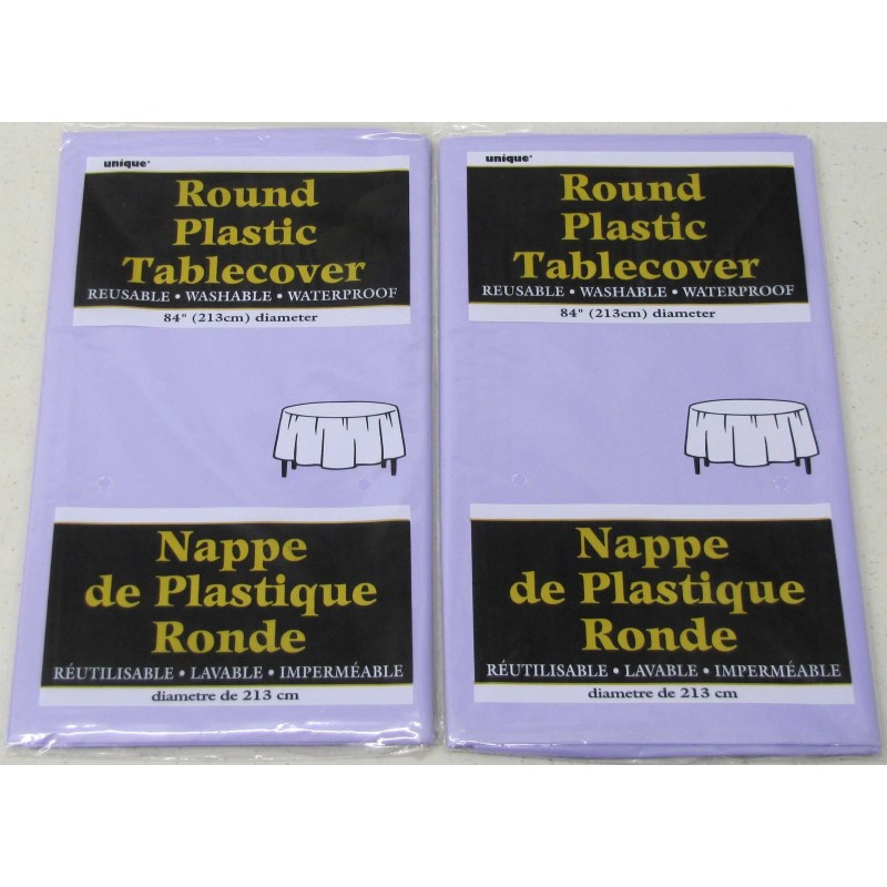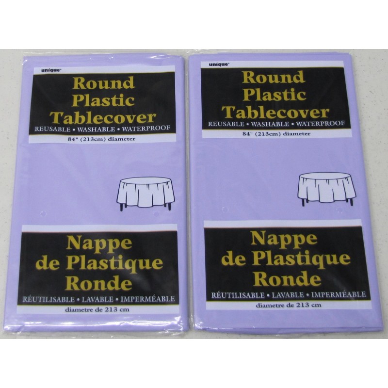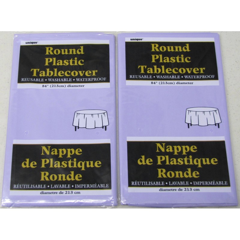 Unique Lot of 2- Unique Lavender Round Plastic 84" Tablecloth Tablecover Reusable Party