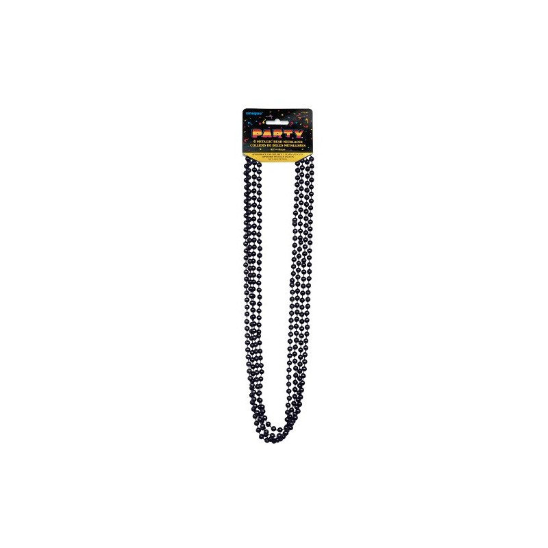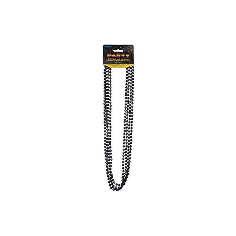 Metallic Black Plastic Bead Necklaces - 32'', 4 Count - Perfect for Parties, Birthdays & New Year's Eve Events