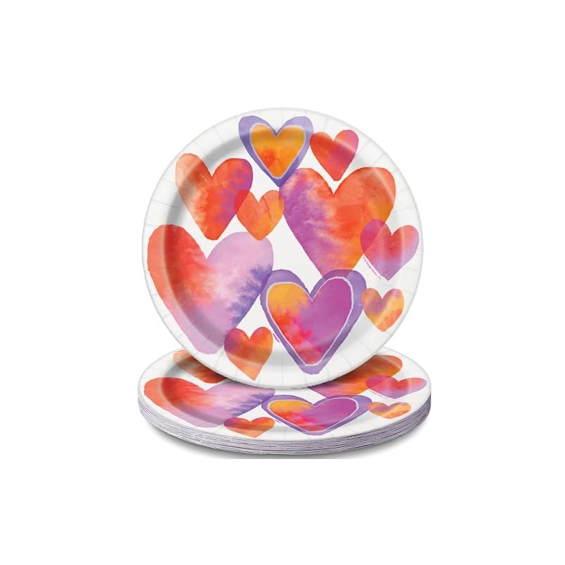 - Pack of 8 Watercolour Hearts Valentine's Day Party Plates