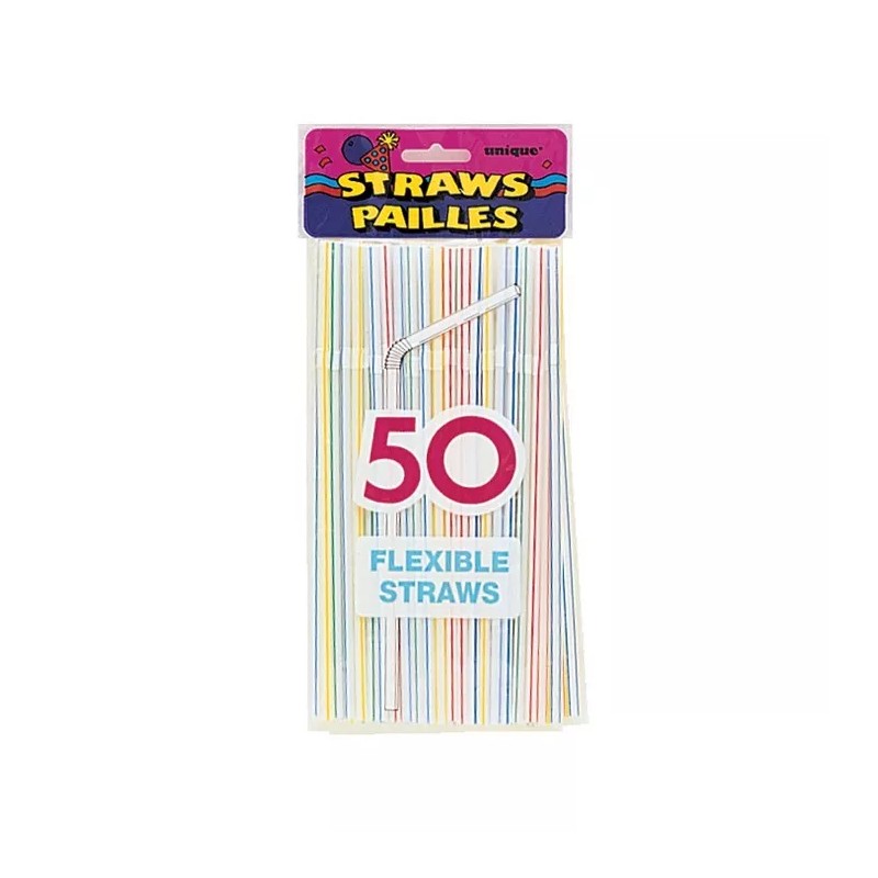 Unique Plastic Flexible Straws 50ct Multicolor Drinking straws