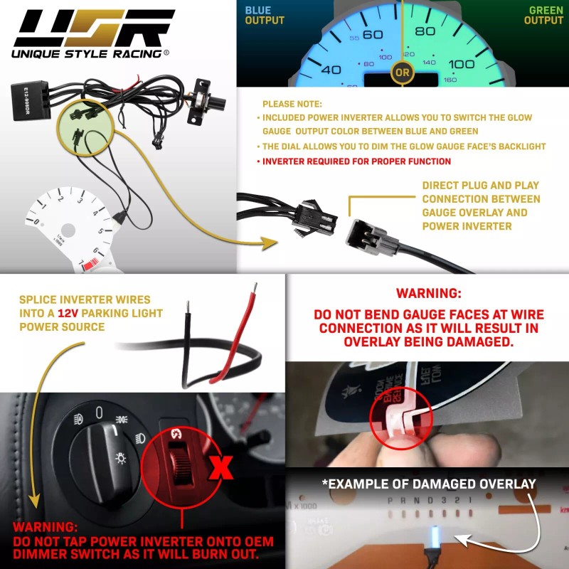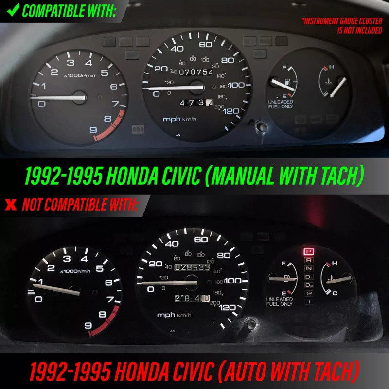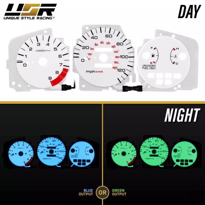 Unique Style Racing (USR) BLUE/GREEN Glow Gauge White Overlay For 1992-1995 Honda Civic EG Manual Cluster